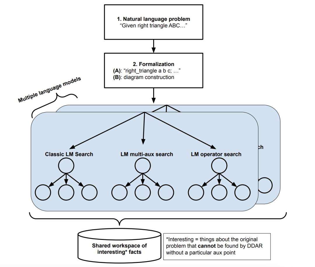 AlphaGeometry2作为神经符号混合系统,其语言模型基于gemini。该系统在比前身多一个数量级的合成数据上从头训练,这使其能解决关于物体运动和角度、比例或距离方程等更具挑战性的几何问题。