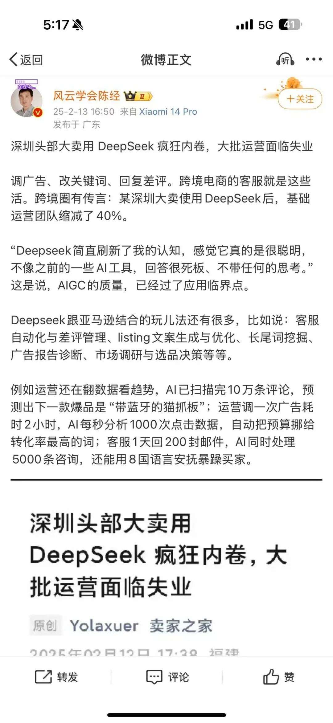 微信与DeepSeek的合作,引发广泛关注。这一结合,如APPSO主编李超凡所言,堪称“国运级AI +国民级应用”的王炸组合,不仅获官媒引用,还登上微博热搜。